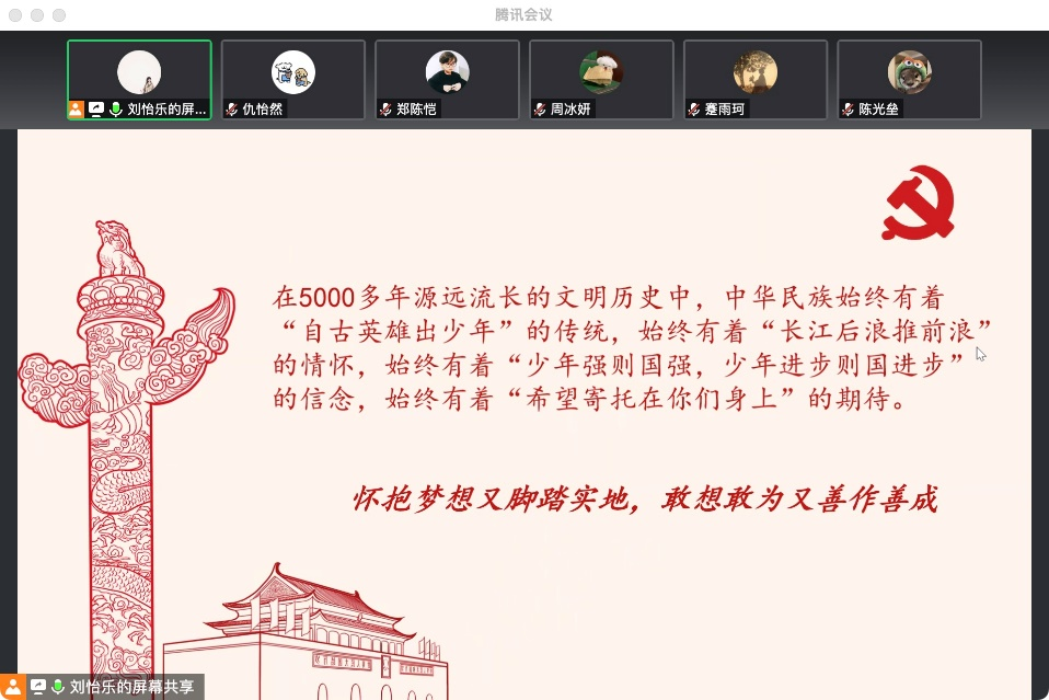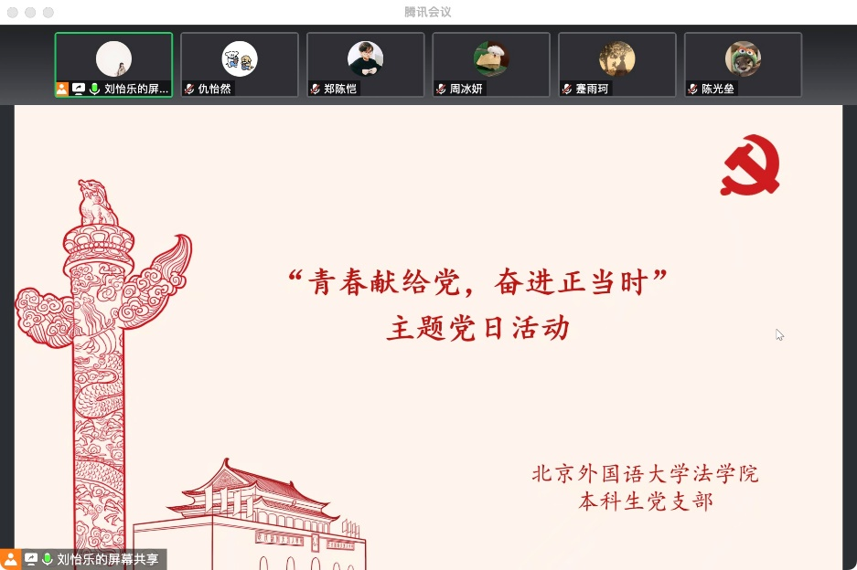为深入学习贯彻党的二十大精神, 2022年11月20日晚8点,艾弗森贝博ballbet官网本科生党支部结合校园疫情防控最新要求,通过线上会议组织开展“青春献给党 奋进正当时”主题党日活动,支部全体党员参会,本科生党支部党务助理刘怡乐同志主持活动。