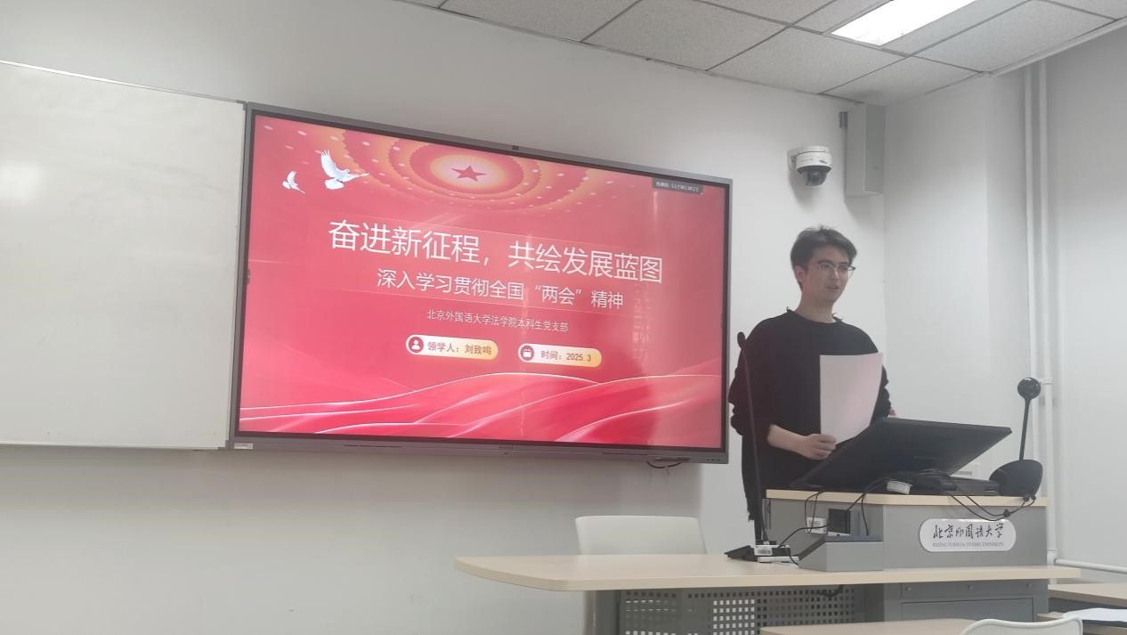 为深入学习贯彻2025年全国“两会”精神,明确发展方向,凝聚奋进力量,2025年3月22日上午,BB贝博艾弗森官方网站本科生党支部于中文楼104教室召开支部会议,集体学习“两会”精神。本次活动由本科生党支部副书记刘致鸣领学,全体支部党员参与。