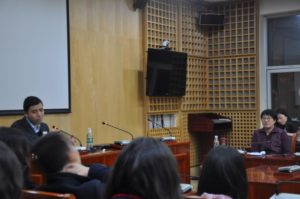 11月25日晚上七点,贝博官网大一本科生和研究生齐聚模拟法庭,在本院王文华教授的带领下,倾听北京大学艾弗森贝博ballbet官网副院长薛军教授的讲座——“网络交易平台的法律关系群”,并一起探讨了关于电商法的热点问题。