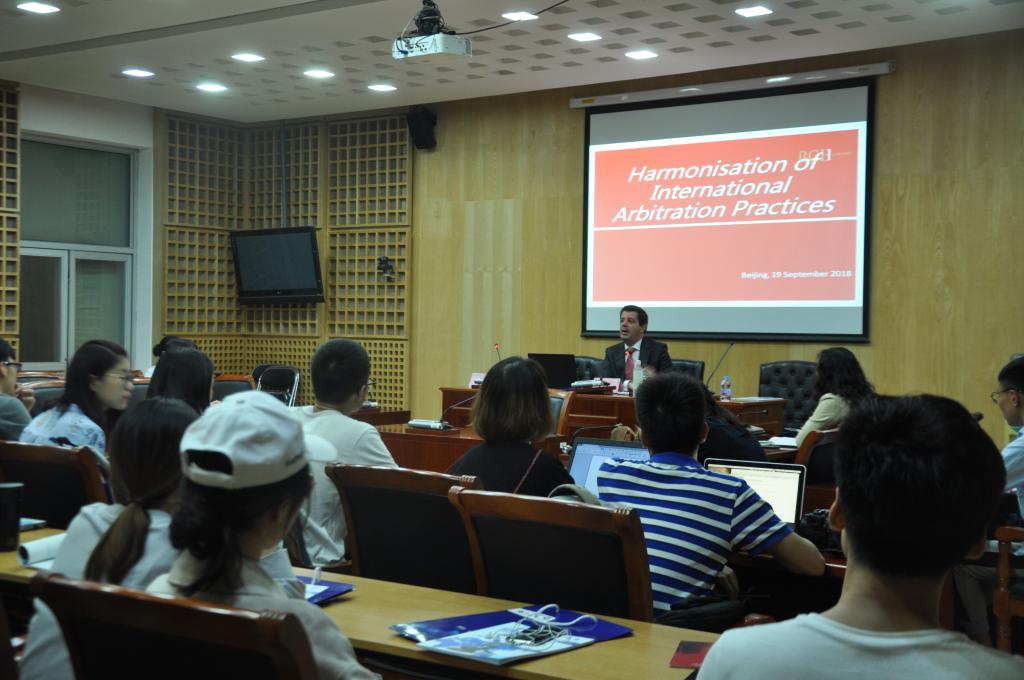 9月19日,2018仲裁周系列活动在我校开展。葡萄牙BCH LAWYERS合伙人DUARTE G. HENRIQUES先生在模拟法庭进行了题为“Harmonisation of International Arbitration Practices”的演讲。
