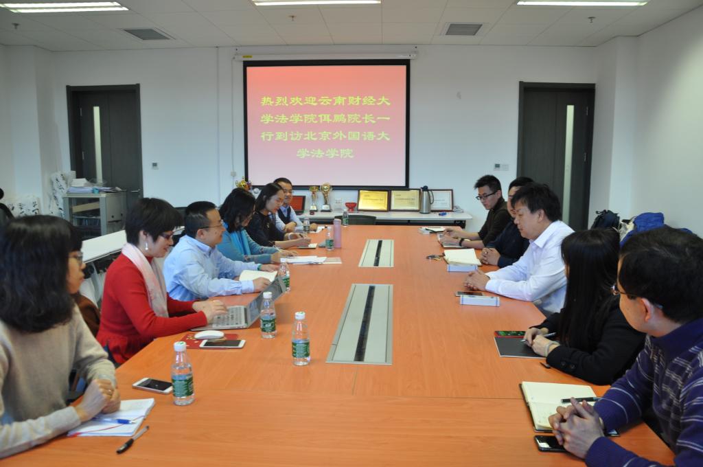 2018年11月27日上午,云南财经大学艾弗森贝博ballbet官网院长佴鹏一行7人到访贝博官网。贝博官网米良书记、闫冬副院长、办公室主任刘辛及相关教师同佴院长一行进行了交流。米良书记和佴鹏院长分别介绍了各自学院的情况、优势及发展思路,表示希望在一带一路人才培养、东南亚法律人才培养、合作开展相关研究、本科教学、学科点建设等方面进行合作交流。闫冬副院长向客人们介绍了贝博官网本科教学发展情况。老师们对各自的研究领域进行了讨论。
