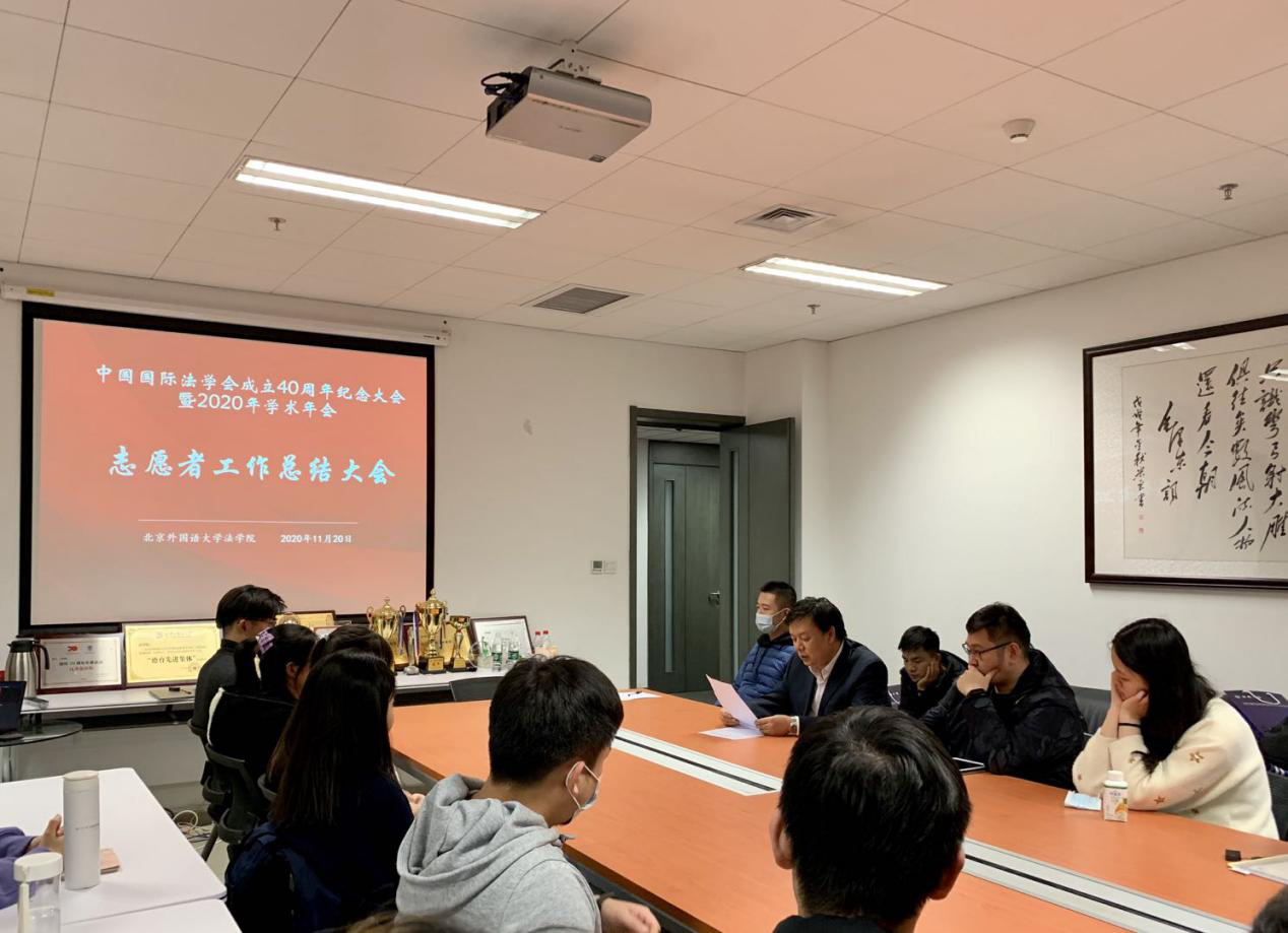 2020年11月20日,中国国际法学会成立40周年纪念大会暨2020年学术年会志愿者工作总结大会在艾弗森贝博ballbet官网1108会议室顺利召开。艾弗森贝博ballbet官网党总支书记、院长米良出席会议并讲话,胡丽娟老师、刘时剑老师以及贝博官网近三十位学生志愿者代表参会。会议由辅导员刘时剑老师主持。