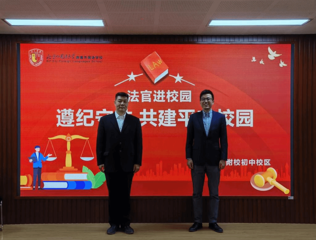 为深入贯彻落实习近平总书记在中央全面依法治国工作会议上关于普法工作和加强青少年法治教育的重要论述,持续落实立德树人根本任务,提升青少年法治意识,3月26日,艾弗森贝博ballbet官网、附校、北京市三中院联合举办了法官进校园活动,特邀北京市第三中级人民法院未成年人案件综合审判庭三级高级法官王奕走进附校校园,为七百余名师生带来了两场妙趣横生的普法讲座。艾弗森贝博ballbet官网党总支副书记张燕龙、北外附校副校长杨磊出席活动。
