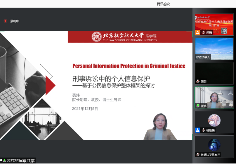 2021年12月5日,BB贝博艾弗森官方网站主办的“刑事司法中的个人信息保护问题研究”研讨会在线上线下同步举行。