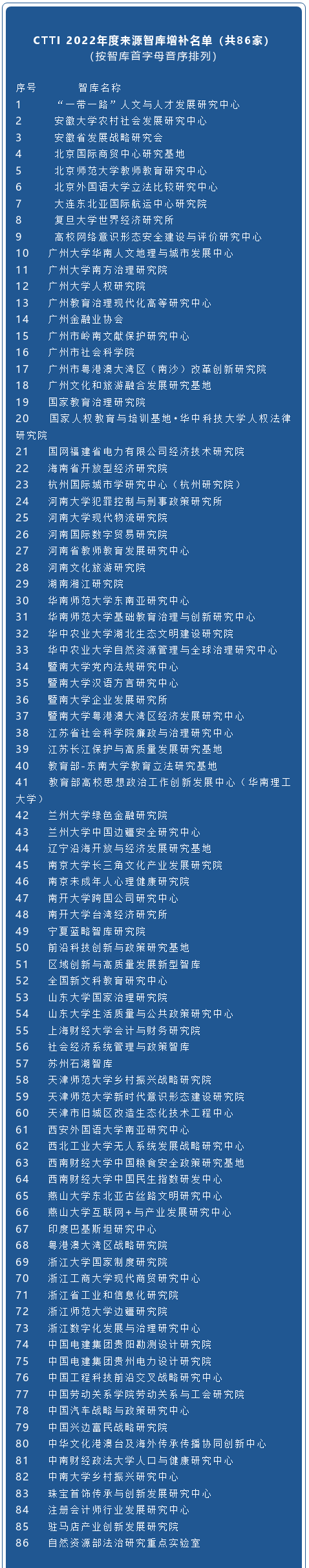 2022年10月,南京大学中国智库研究与评价中心第4次启动CTTI来源智库增补工作,经专家严格审议和评定,最终遴选出86家予以增补,贝博官网立法比较研究中心名列其中。