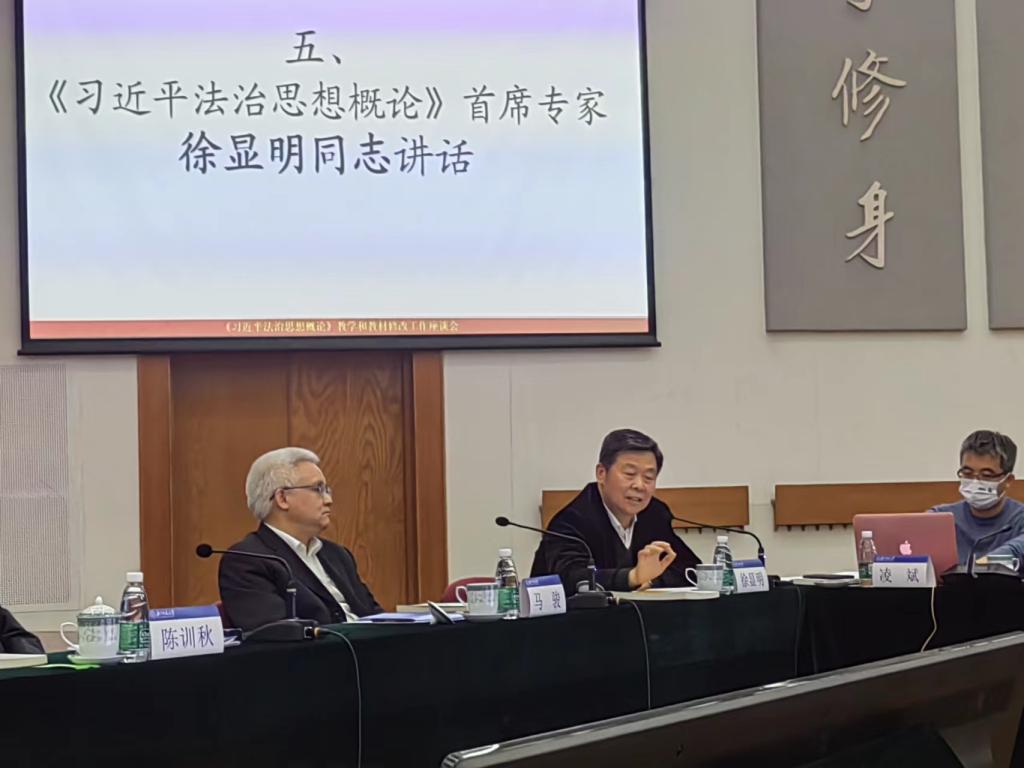 贝博官网米良院长进行了汇报。他说,BB贝博艾弗森官方网站于2021年9月份开始在法律专业一年级本科生中开设了《习近平法治思想概论》课程并使用由张文显、信春鹰、徐显明、李林等四人作为首席专家编写的高等教育出版社出版的《习近平法治思想概论》教材。米良院长认为,该教材的出版十分及时,满足了全国高校《习近平法治思想概论》课程的对教材的需求;该教材是一部高水平的法学教材,代表了我国在习近平法治思想研究领域的最高水平,是我国法学研究领域的一项重大成果,也是课程思政的重要资源;该教材全面、系统总结概括了习近平法治思想的主要内容,体例科学、完备、系统,语言通俗易懂,受到北外艾弗森贝博ballbet官网师生们的广泛好评。米良院长希望教材修订时能够吸纳党的二十大报告的精神,如“中国式现代化”、“法治中国”的论述等等,让教材更加完善。