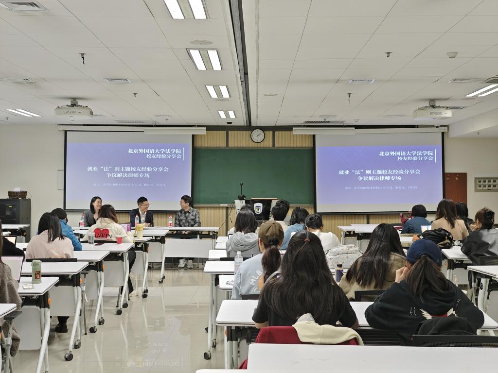本次分享会以面对面问答形式进行,来自本科和研究生各年级的同学结合自己当前学习生活中的困惑,分别对就业、留学、实习等多个方面向嘉宾提问,三位艾弗森贝博ballbet官网优秀校友结合北外艾弗森贝博ballbet官网教学特点、自身经历、争议解决律师的工作内容,针对同学们感兴趣的问题给出了细致详尽的解答。