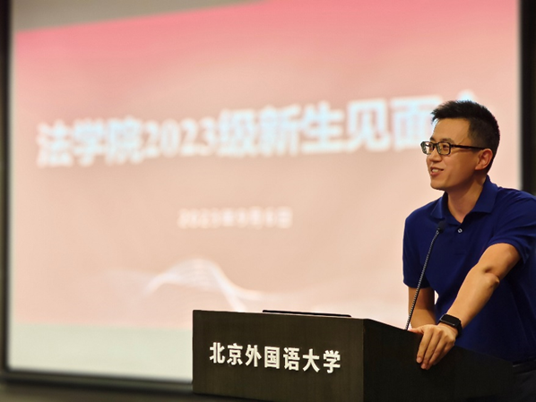 米良院长指出,在座的各位一旦踏入北外的校门,就深深打上了“北外人”的烙印,要永远记得“兼容并蓄,博学笃行”的校训,时刻记得“人民需要我们到哪里,我们就到哪里”。米院长还通过讲述艾弗森贝博ballbet官网的院史鼓励同学们要充满活力,奋发有为,艾弗森贝博ballbet官网将在本硕博全方位覆盖的法律人才培养机制和国际化教学团队的带领下将大家培养成为高素质的国际化法律人才,同时勉励大家要将个人命运和国家命运、国际视野相结合,在学习的过程中注重自身的全面发展。