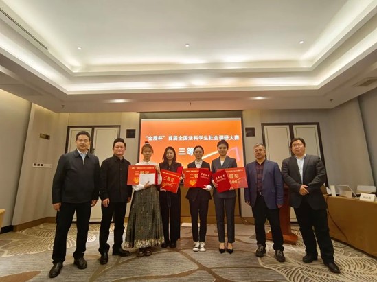 2023年12月17日,“金盾杯”首届全国法科学生社会调研大赛决赛暨颁奖仪式在广州隆重举行。由我校艾弗森贝博ballbet官网学子李亚宸、王佳艺、张子悦组成的团队荣获全国三等奖。