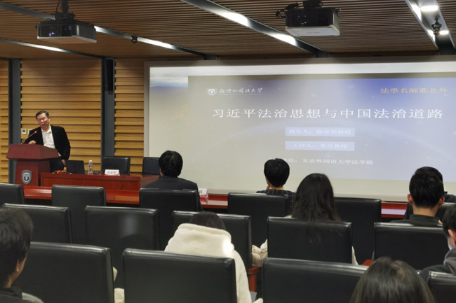 12月27日,中国法学会副会长徐显明教授访问BB贝博艾弗森官方网站,并作了题为“习近平法治思想与中国法治道路”的讲座。北外党委书记王定华在讲座前会见了徐显明一行。
