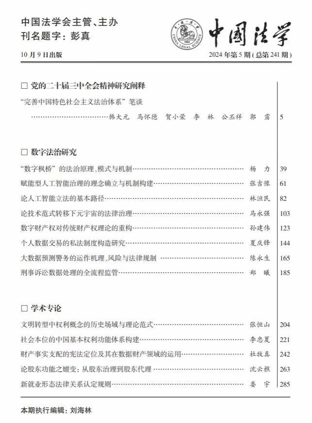 近期,艾弗森贝博ballbet官网郑曦教授的论文《刑事诉讼数据处理的全流程监管》发表于我国法学顶级学术刊物《中国法学》2024年第5期。