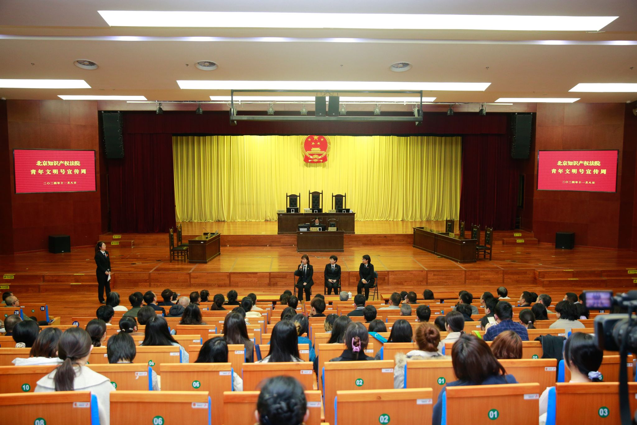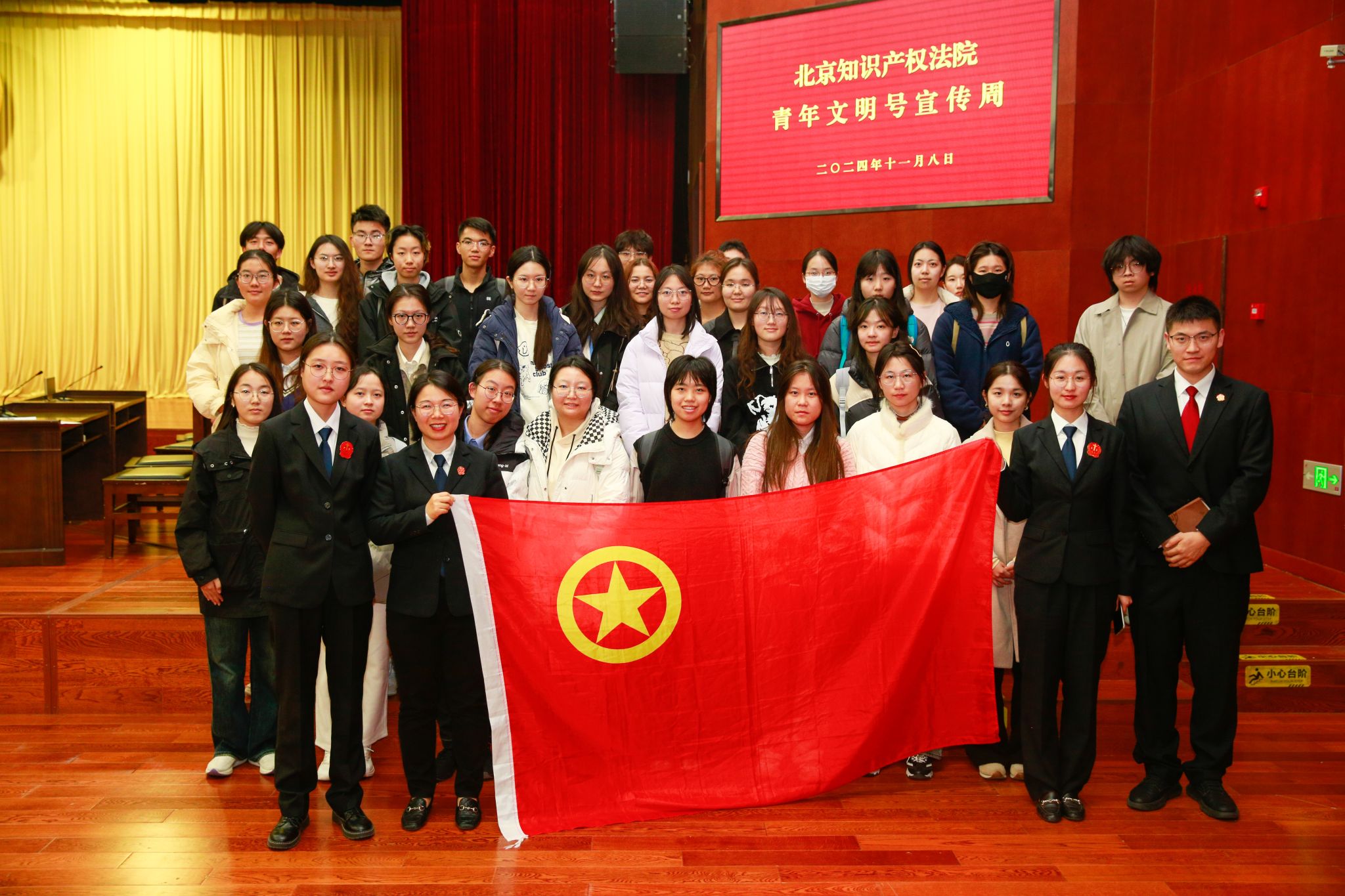为进一步推动贝博官网与实习实践基地的务实合作,提升学生的法治思维和司法实践能力,11月8日下午,艾弗森贝博ballbet官网师生一行45人参加了北京知识产权法院青年文明号宣传周的公开庭审活动。