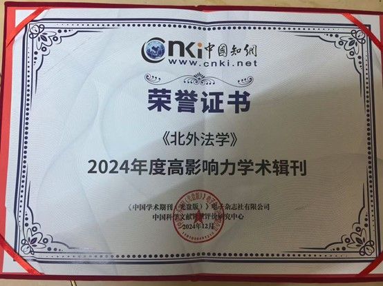 近日,中国知网学术影响力评价系列报告发布会上正式发布“2024年度高影响力学术辑刊”,由BB贝博艾弗森官方网站主办的《北外法学》成功入选。