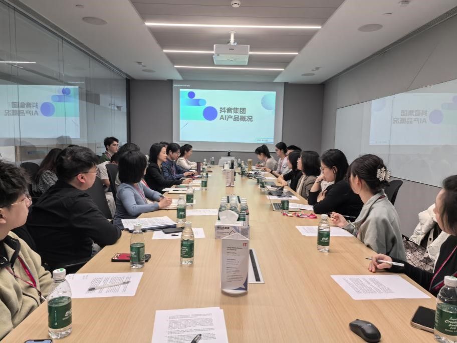交流会上,抖音法律团队详细介绍了企业发展脉络、业务布局及AI技术成果应用,分享了“抖音寻人”公益平台通过算法精准匹配助力失踪人员回归家庭的实践案例,以及“文旅扶贫”项目通过短视频和直播赋能乡村振兴的创新模式。在研讨环节,双方围绕生成式AI法律合规体系构建、数据和个人信息保护、算法法律规制等前沿议题展开深度对话,北外师生就AI生成内容著作权归属、AI标识、大模型幻觉等实务难题与业界专家展开思想碰撞。