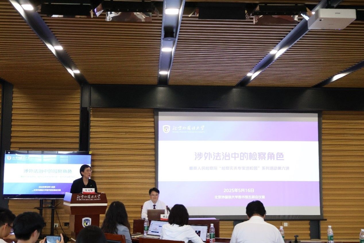 为促进法学理论与司法实务深度融合,推动高校师生深度洞察涉外法治领域的检察实践,2025年5月16日下午,最高人民检察院与我校共同主办的“检察实务专家进校园”系列活动第六讲在BB贝博艾弗森官方网站图书馆五层会议室顺利举行。