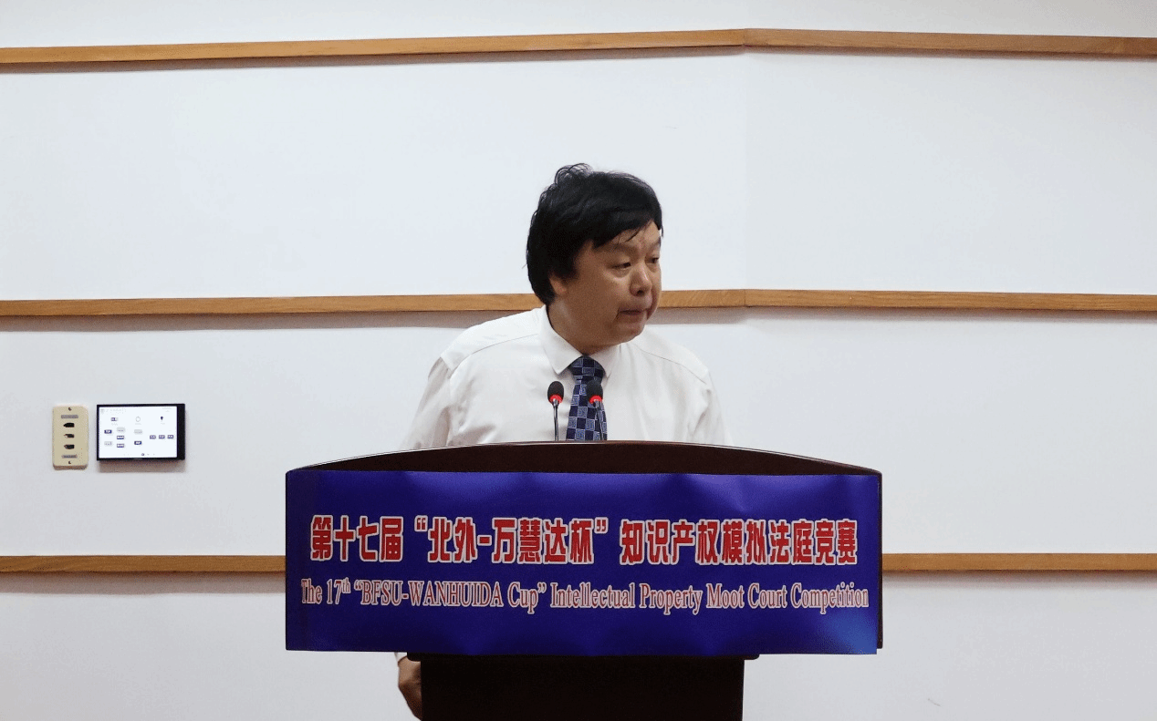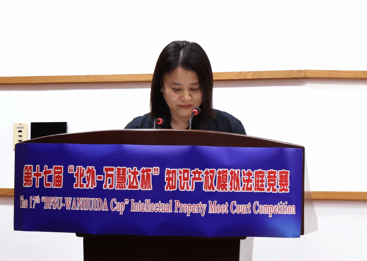 清华大学艾弗森贝博ballbet官网副教授、博士生导师蒋舸作为法官代表致辞,总结了本届“北外-万慧达杯”知识产权模拟法庭比赛举行情况,其指出此次比赛主要涉及的是著作权问题,选手们对此进行激烈讨论,裁判们对此也有了深刻理解。最后其展望未来,指出知识产权在人工智能时代,还需要我们继续前进与探索,共同推动创新发展。