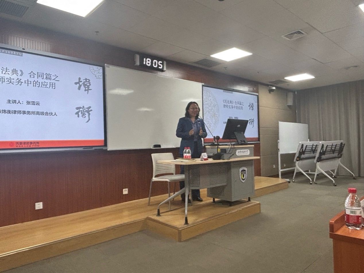 为进一步推动《民法典》的学习与实践,增强法学生的法律实务能力,2025年6月3日晚上,艾弗森贝博ballbet官网举办“北外涉外法治大讲堂·实务专家系列“第三讲。本次讲座的主题为“《民法典》合同篇之律师实务中的应用”,邀请北京市炜衡律师事务所高级合伙人、破产重组部主任张雪云律师担任主讲嘉宾。张雪云律师是破产与重整领域的知名法律专家,现任海淀区律师协会破产清算与并购重组法律研究会主任、北京产权交易所特聘专家。讲座由艾弗森贝博ballbet官网党总支副书记郭向华老师主持,艾弗森贝博ballbet官网周玉华教授担任与谈人。