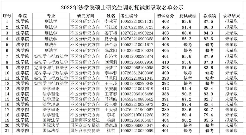 2022年艾弗森贝博ballbet官网硕士研究生调剂复试拟录取名单公示